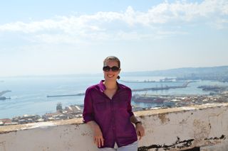The Casbah is basically on the side of a big hill, sloping down to the water. We started at the top of the hill and worked our way down. The first stop involved climbing to the roof of a house and over looking the entire area: