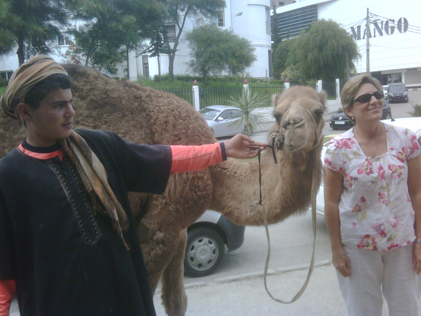 Lunch turned out to be an adventure in and of itself – as we waited for our food, the cafe down the street had some kind of fire – we saw billowing smoke and eventually a fire truck showed up. No flames, though, and it seemed to be under control. No one was really panicking. Then all of a sudden we saw a camel walking down the road! Which was weird, because we aren’t exactly near the desert in Algiers, plus were in one of the nicer parts of town called Sidi Yahia, eating at an outdoor cafe across from the United Colors of Benneton store. The camel’s handler was walking it around and accepting money to take pictures with it, a la the creepy Elmo outside 30 Rock in NY. Here’s a photo of one of my friends with the camel. The Mango store in the background gives you an idea of the area. Not so much the natural habitat of a camel.